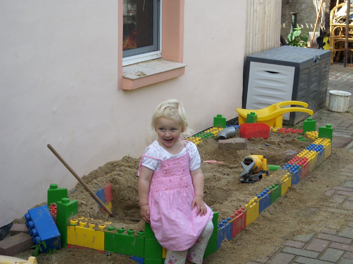 Stand Januar 2018: Die Sandkiste haben wir abgeschafft; wir haben den Parkplatz für ein Gokart benötigt ;-) !!!